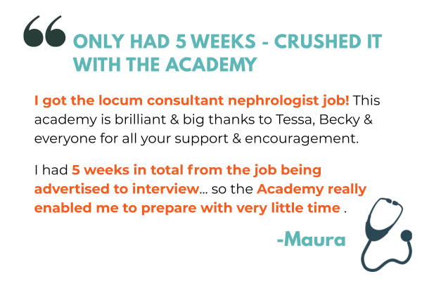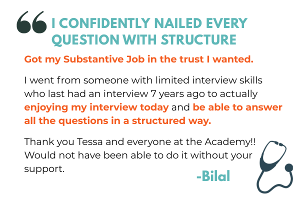 Click on the button below to be THE FIRST to be notified once we re-open the doors to my signature programme, the Ace Your Consultant Interview Academy, so that you can go into your interview feeling confident, prepared, and secure your dream substantive job.